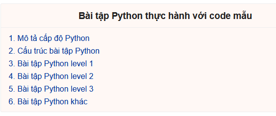 muốn nâng cao trình độ Python. Mỗi bài tập đều có đầy đủ các phần là yêu