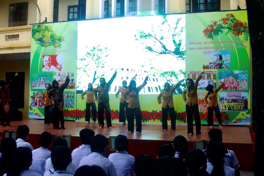 Chương trình SHTT “Chào đón HS khối 10” được tổ chức sáng 31/7/2023 là một chương trình vô cùng đặc biệt. Các tiết mục văn nghệ dành tặng các em học sinh khối 10 có sự tham gia của tất cả thầy cô trong Ban giám hiệu, Đoàn trường và các anh chị học sinh khối lớp trên.