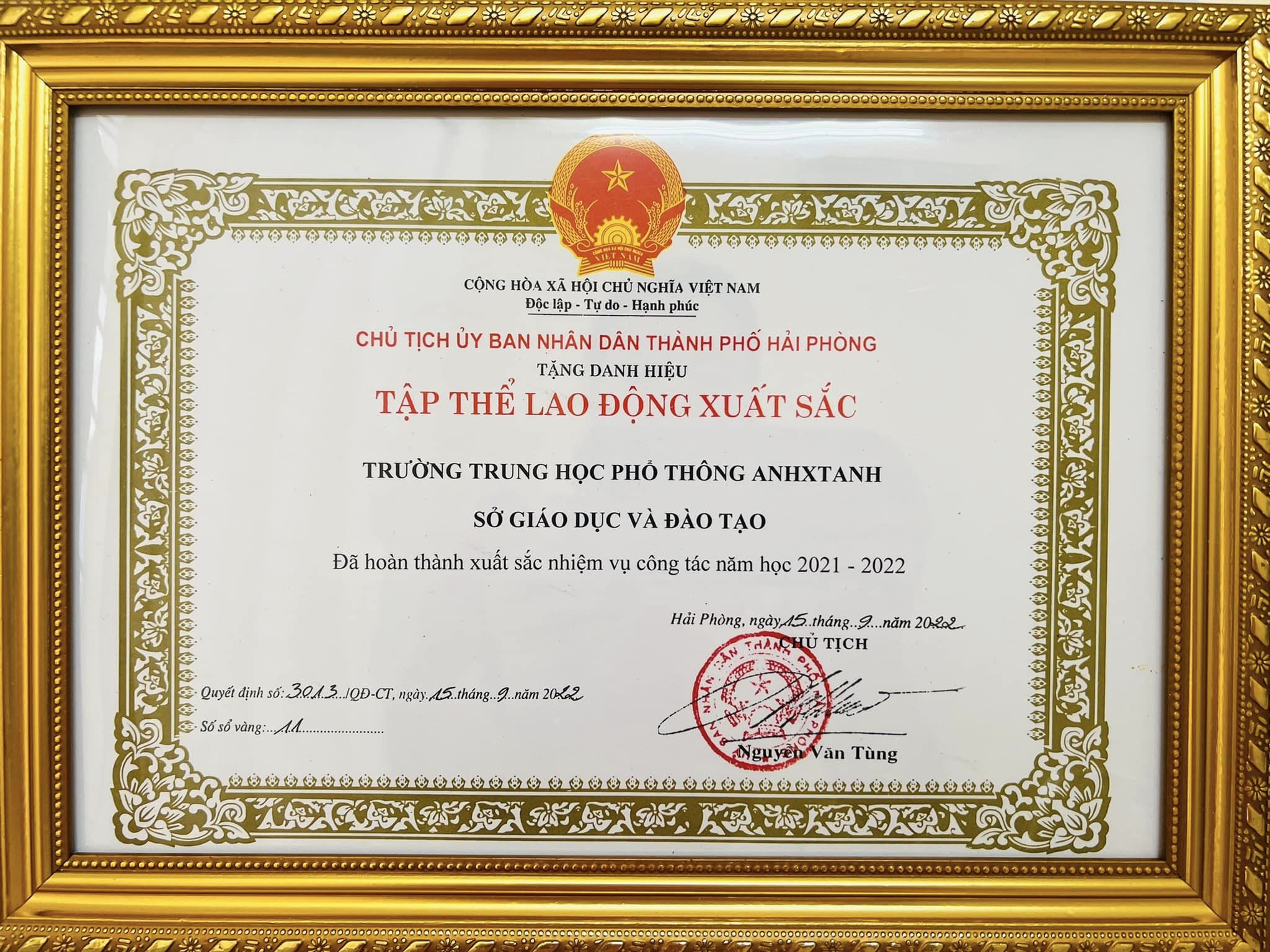 thành phố. 4/9 môn thi đứng thứ nhất thành phố gồm: Lý, Hoá, Sinh, GDCD. 100% học sinh khối 10 năm học 2021-2022 thi và đạt chứng chỉ tin học quốc tế MOS - chứng chỉ tin học có giá trị vô thời hạn trên toàn cầu…Qua đó, trường vinh dự được nhận bằng khen của UBND thành phố và giấy khen của Sở GD&ĐT Hải Phòng.